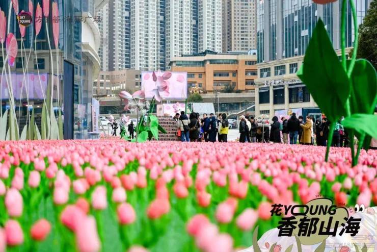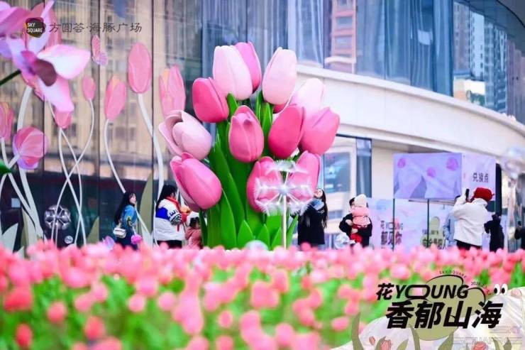 花神降临方圆荟·海豚广场的郁金香花海