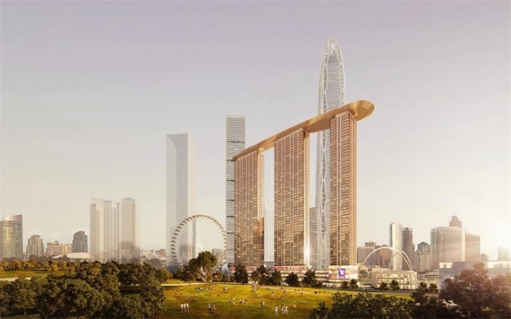 同时,还将打造媲美新加坡金沙酒店的云顶会所,380m塔楼楼顶建造直升机停机坪。