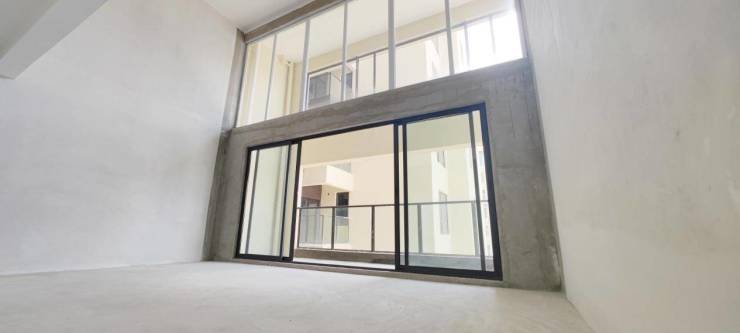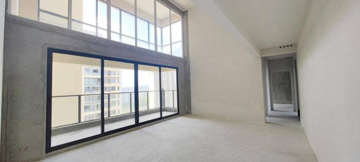 首先参观的是一期的跃层户型,这客厅挑空是真气派,具有立体宽敞的空间感。当然,我们基本都会搭板改造,下面是大客厅、上面做套房卧室,在一套房子内就能享受上下两个超大的观景面,采光视野都很棒,四周的景观尽收眼底,同样是很舒适的生活体验。