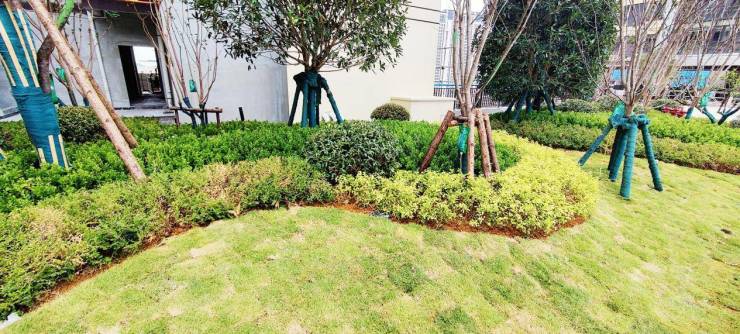 社区园林的整体绿化将于交房前两个月完成,经过两个月的打理和养护,树丛与草坪的生长状态会更好,最终的绿化呈现也会更加整体、更加精致。