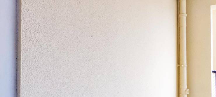 再看室内细节,内墙采用全铝膜工艺,且有水的房间采用水泥砂浆抹灰,无水房间墙面采用磷石膏抹灰,这种做法不容易热胀冷缩、不容易开裂,做出来平整度高、垂直度高。从地面到墙面都非常平整,颗粒度非常细腻,摸起来不扎手,工艺水准很好。