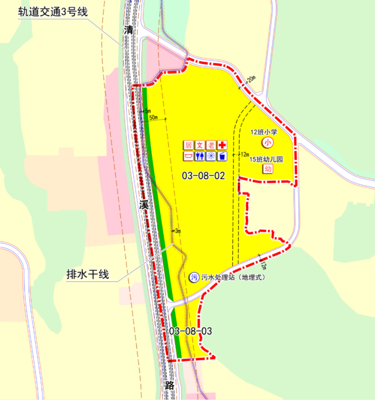 03-08-02、03-08-03地块总计容建筑量36.68万方,综合容积率3.4,建筑密度30%,绿地率25%,非住宅建筑比例8%,共规划8600人。地块要求配建1所15班幼儿园和1所12班小学。