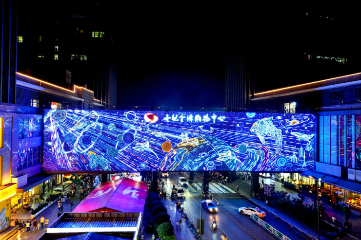 最吸引眼球的是项目于9月29日上线的全新场景「漫游秋日•星河灿烂」。场景聚合星球宇宙、异能怪兽、贵阳地标等元素,并以赛博朋克风。带来视觉冲击的同时,亦成为城市最新打卡地。