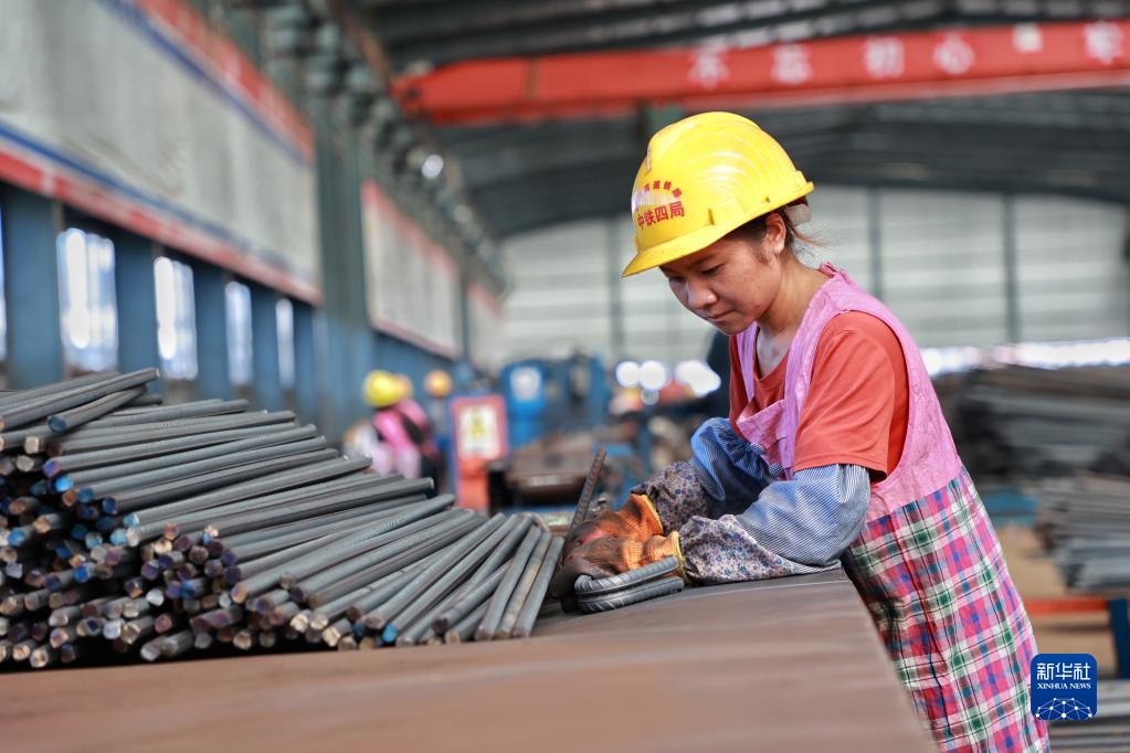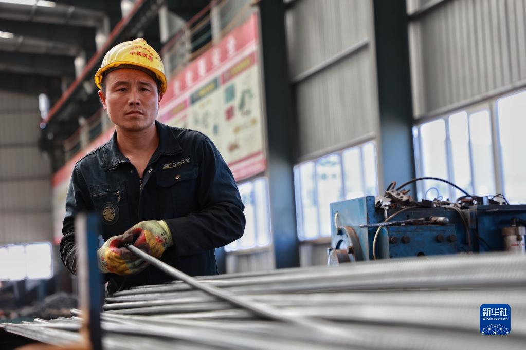 9月21日,一名工人在位于贵州省独山县的贵南高铁项目工地加工钢筋。新华社记者 刘续 摄