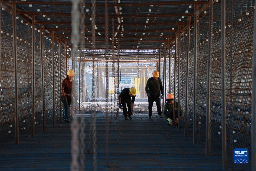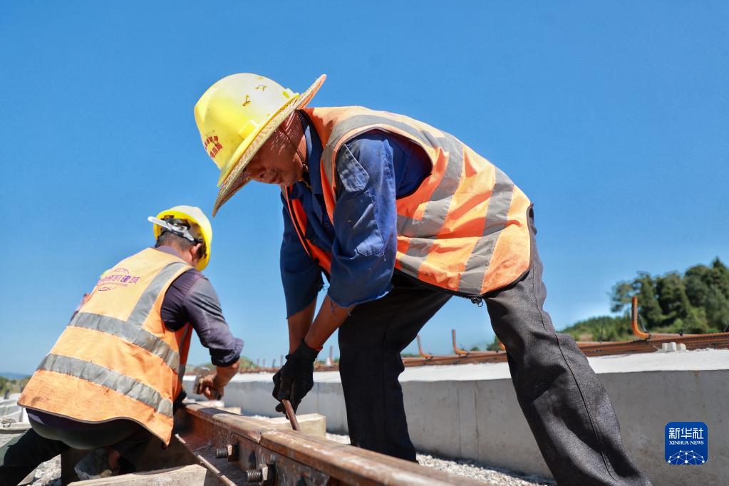 9月21日,工人在位于贵州省独山县的贵南高铁项目工地绑扎钢筋。新华社记者 刘续 摄