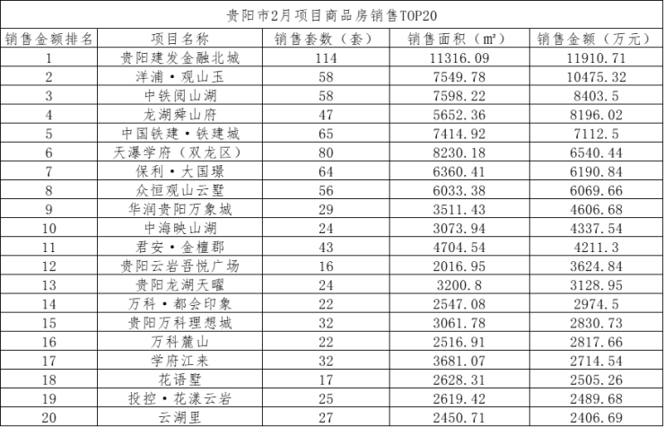 在这个总体销量有所回正的2月份,贵阳主城各区的住宅销售情况,可谓是泾渭分明。