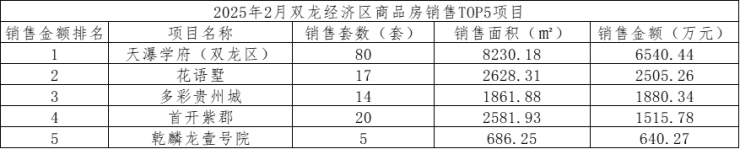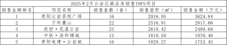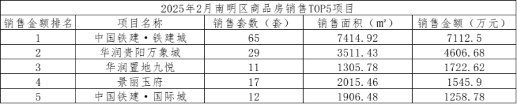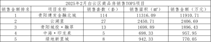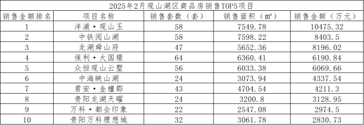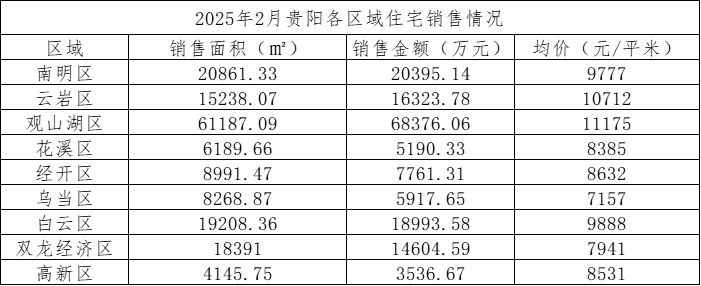 数据显示,2025年2月,贵阳市(含三县一市)销售商品房1965套,销售面积21.37万方,销售金额19.74亿元;