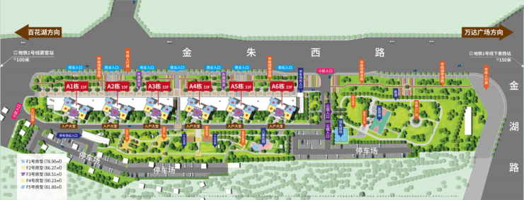 贵阳地铁·湖山郡项目位于观山湖区金朱西路地铁1号线下麦西站及窦官站之间,由市属国有企业——贵阳地铁置业开发,总占地面积约60万㎡,总建筑面积约150万㎡,共分为6期开发,一期现已售罄,目前在售二期花样世界组团,产品为6栋高层现房住宅,即买即交房,规划户数930户,面积段约79-91㎡,底商2层,3-33层为住宅,2T5户。