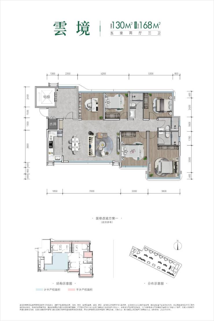 130㎡平层户型赠送面积约38平,参考均价9700-10500元/平,东西朝向,2T2