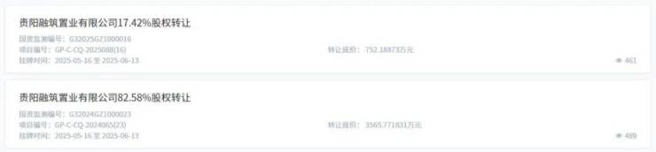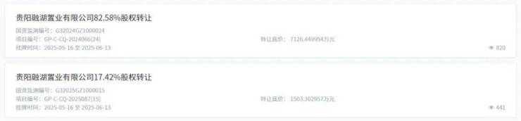 据贵州阳光产权交易所公示信息,今年5月份,贵阳城投置业以及贵阳云湖地产公司,分别公开转让贵阳融湖置业有限公司和贵阳融筑置业有限公司100%股权,而这两个公司对应的主要标的资产,即为上述的三宗地。