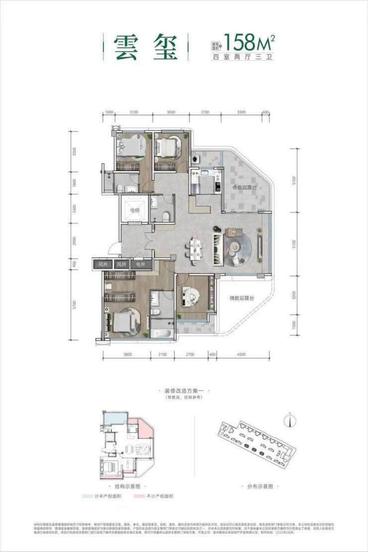 值得注意的是,所有户型均为平层,而158平米小高层户型,则是带错层露台的类四代宅产品。
