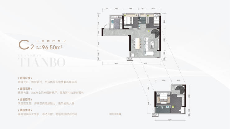 远洋·观山天铂位于观山湖区阳关大道上,地处观山东板块中部。项目周边配套成熟,交通便捷,区域发展潜力充足,并能近享贵阳北站、高新区与金融城商圈的资源辐射。目前该项目推售二期E地块,产品采用全板式+全跃层设计。