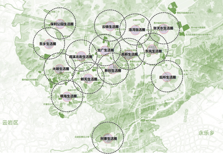 生活空间:构建15分钟社区生活圈,聚焦市民的日常“教业文卫体、老幼食住行”、便捷“中青年就业创业”,突出问题导向,找差距、补短板,有效提升群众获得感、幸福感、安全感,将乌当打造为更健康、更安全、更宜居的高品质生活空间。