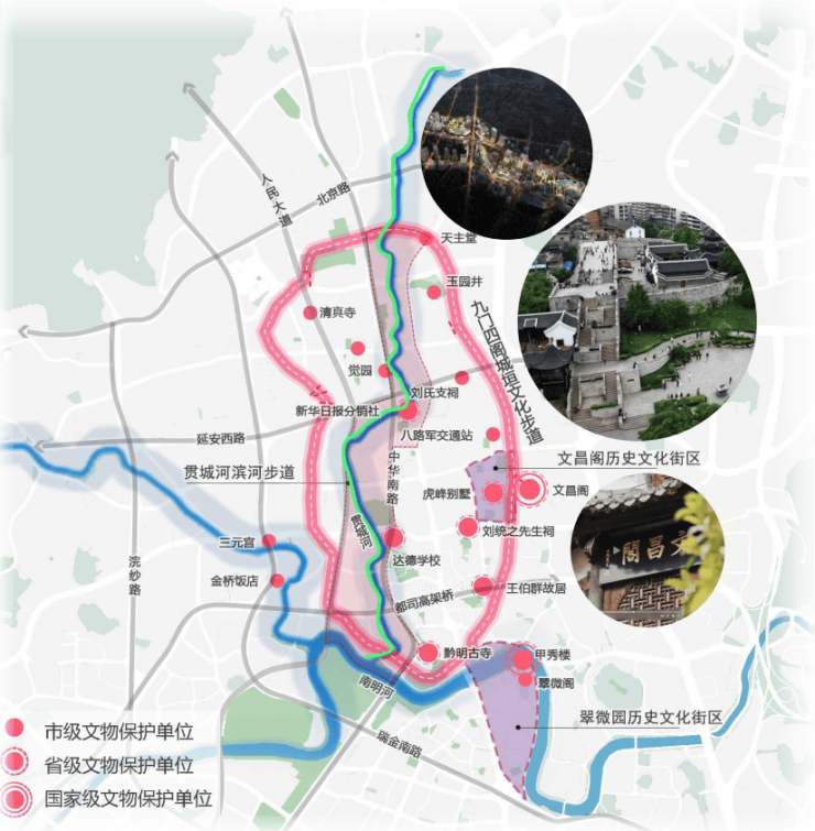 一街:依托九门四阁城垣文化步道,挖掘区域内历史文化资源潜力点;