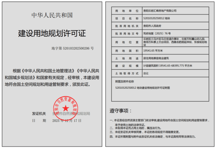 此外还值得关注的是,据贵阳市自然资源和规划局公示信息,云岩区三马片区优质初中配建项目已于2025年12月22日,获取了用地预审与选址意见书。