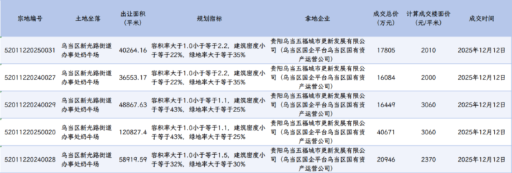 据悉,该5宗宅地均位于乌当区新光路街道办事处奶牛场片区,均为原中天吾乡项目用地,总出让面积约30.54万方。