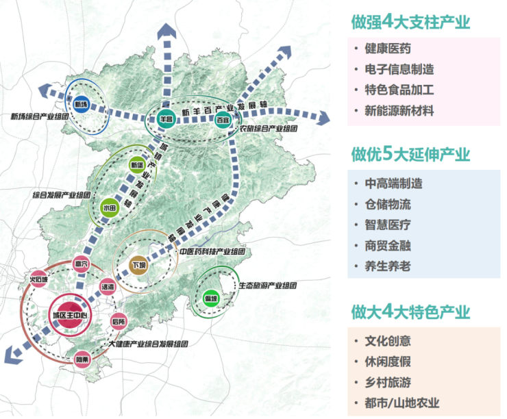 “两片”:南部康养文化旅游区、北部商贸物流产业区;