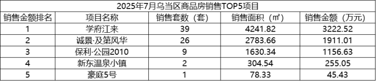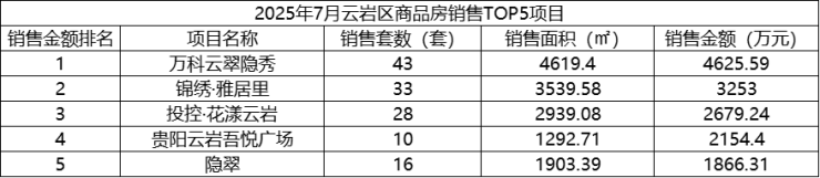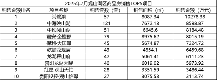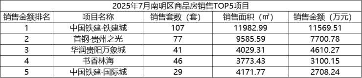 数据显示,2025年7月,贵阳市(含三县一市)销售商品房3440套,销售面积35.72万方,销售金额31.63亿元;