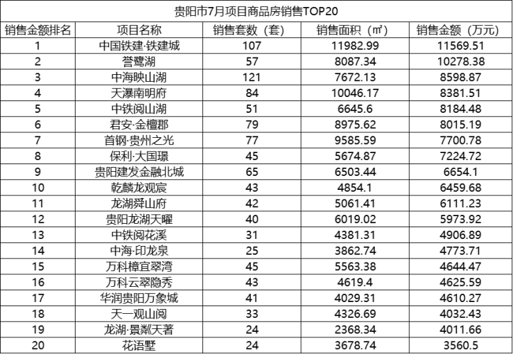 贵阳主城楼市月报|7月,市场回暖,铁建城重回榜首