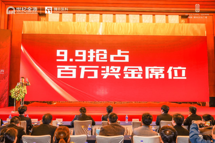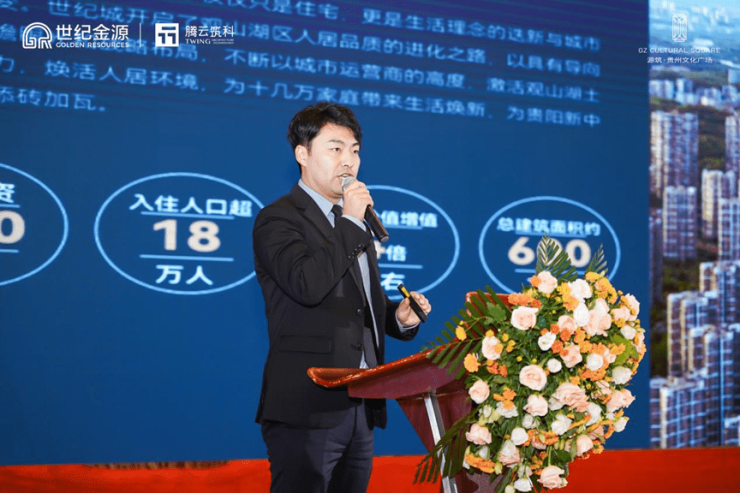 源筑·贵州文化广场项目副总经理黄迅至现场致词,源筑·贵州文化广场是世纪金源在贵阳主城倾力打造的标杆项目,也是集团布局西南的战略性项目,更是贵州省重点工程、省十大文化产业基地,承担着城市发展和文化焕新的重任,肩负城市人居变革的重要使命。对此,世纪金源集团高度重视项目建设和销售人才培养,力促与各卓越渠道建立合作共赢的战略关系,塑造营销之魂,再创辉煌业绩!