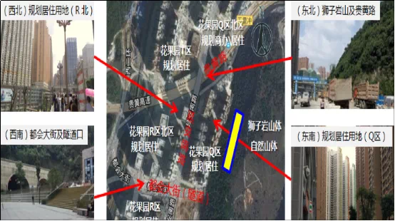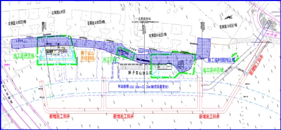 据介绍,花果园西站的轨面埋深约62-95米,车站共设置3组风亭,3个出入口,2个安全出口。车站施工采用1座施工斜井进行主体暗挖,设置两个横通道接入车站主体。斜井位于贵黄路五里冲加油站回转车道南侧,出入口位于狮子岩山体山脚下贵黄路地道一侧。