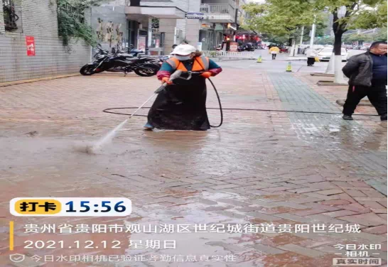 环卫工人对路面进行冲洗