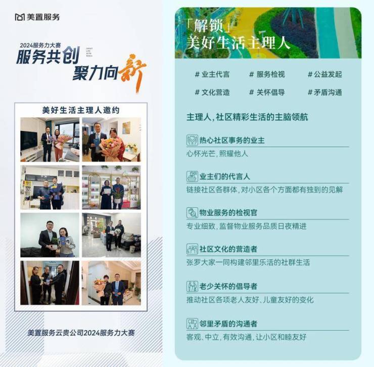 每个人都有自己向往的美好生活,我们都是自己生活的掌舵人,我们为美好发声,为建设美好社区共同探索服务创新之路……,2024年春,美置服务发布【美好生活主理人招募计划】,寻找有热爱、有想法、正能量的业主,携手共建美好社区。