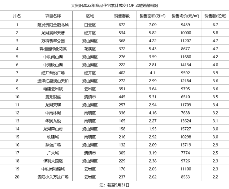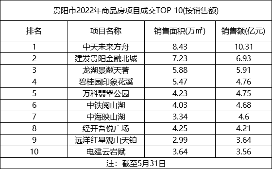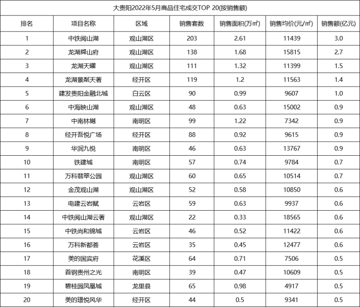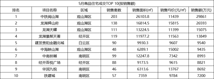 中铁阅山湖成为贵阳5月销冠,建发金融北城依然冠绝总榜