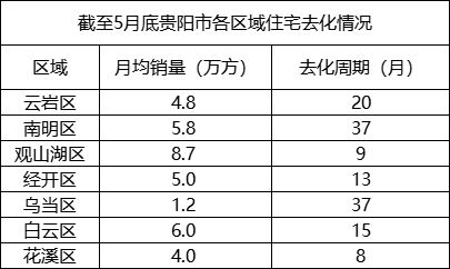 去化周期方面,各城区倒是显示出了一致性,除了观山湖区外,其他区截至5月底,去化周期都有所增加。