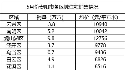据悉,2022年5月,贵阳六区销售商品房36.2万方,环比下降12.56%,销售住宅29.2万方,环比上涨8.55%,住宅销售价格依然稳定在万元左右。