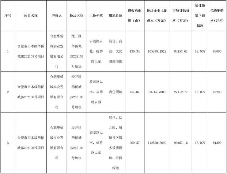 据合肥市自然资源和规划局公示,拟收回的合肥市经开区3宗存量闲置土地产权人均为合肥华侨城实业发展有限公司,涉及土地面积合计达784.17亩。此次土地收购明确将依托地方政府专项债券资金进行。