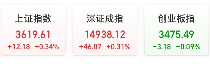 12月6日,三大股指开盘涨跌不一,沪指涨0.22%,深成指涨0.13%,创业板指跌0.51%。截止发稿,沪指涨0.34%,深成指涨0.31%,创业板指跌0.09%。