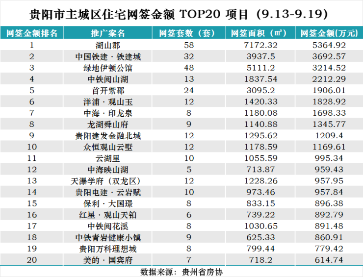 湖山郡重回榜首;观山湖核心有望打造新大平层产品(贵阳楼市周报9.18-9.20)