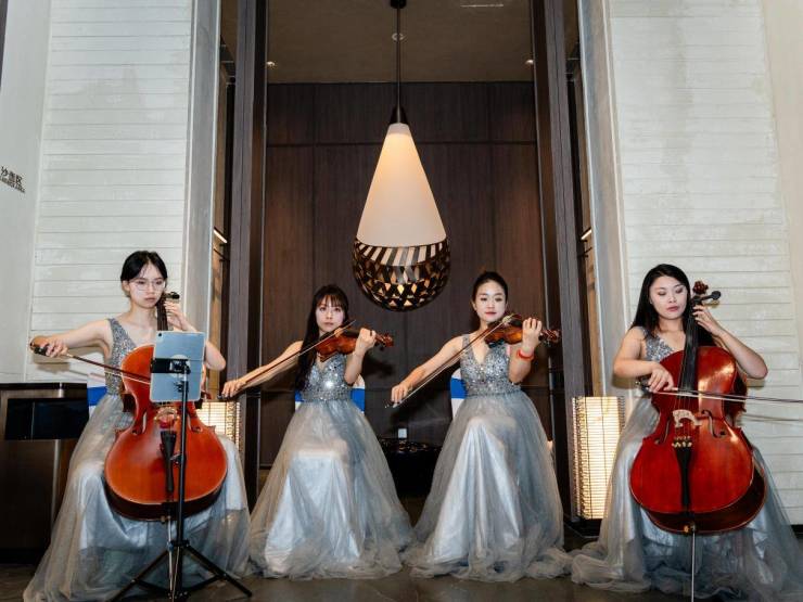 共同欣赏着盈满小提琴优雅乐曲的实景示范区。