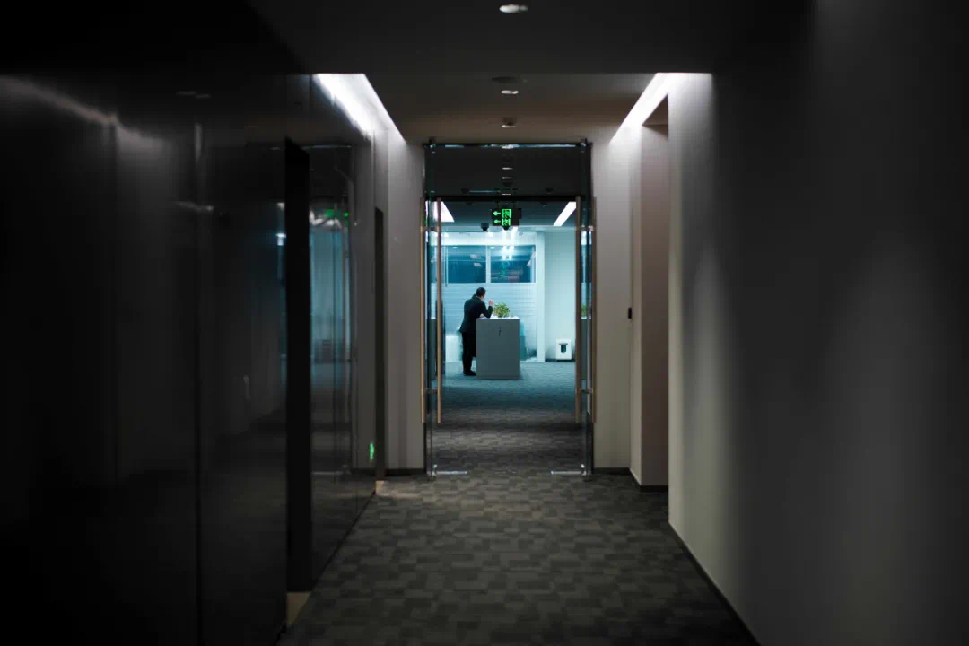 (20:00,国际中心一家公司工作人员仍未离开办公室)
