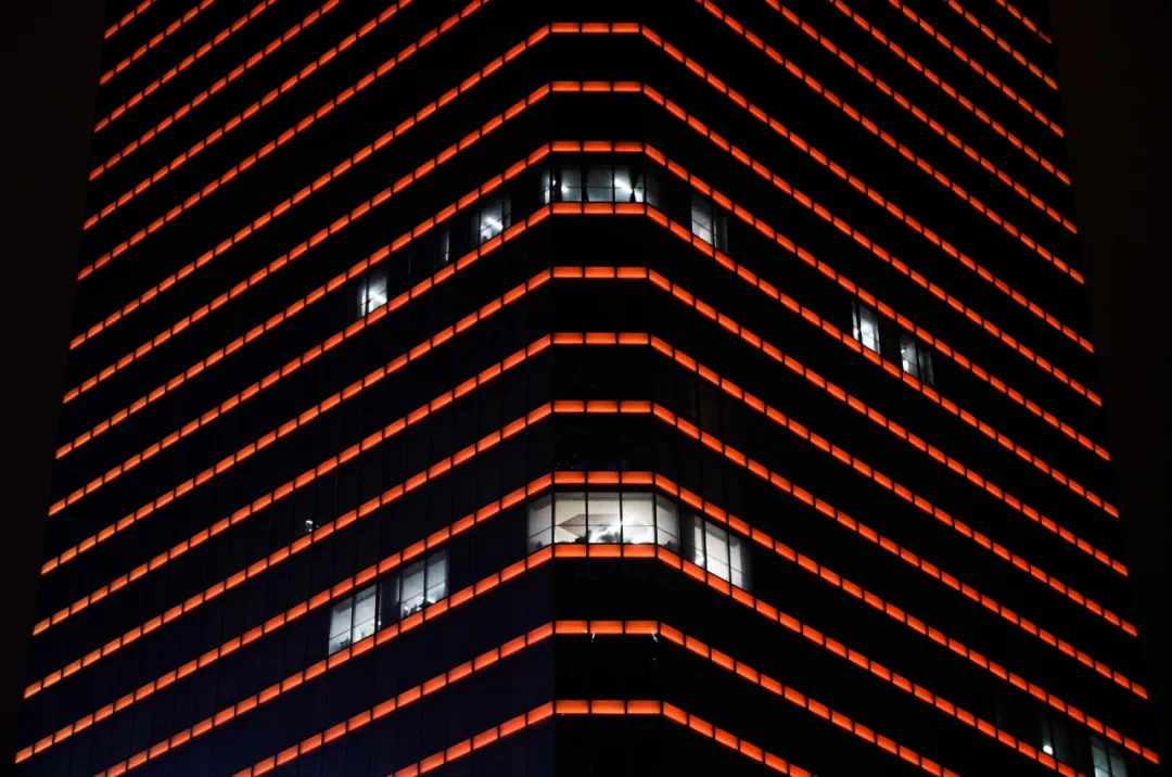 (21:00点,国际中心3号楼一家律师事务所的灯依旧透亮)