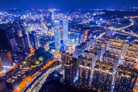 (22:00分,灯火通明的花果园中环广场写字楼群)