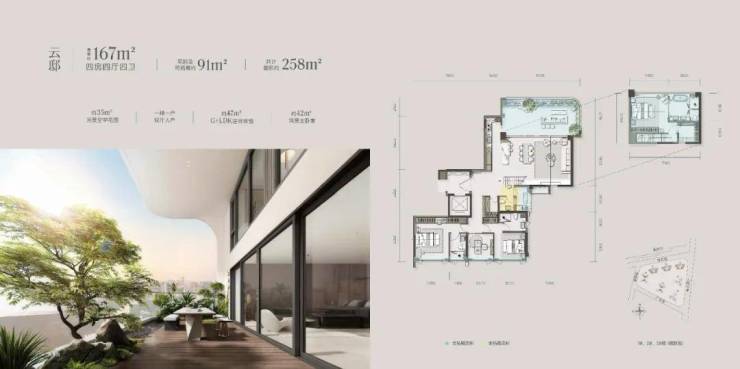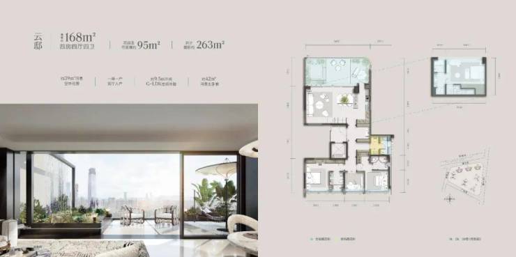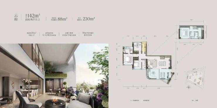 据了解,青云之上项目提供建面140-338平米的四代跃层住宅产品,主要卖点是高增送和大露台。