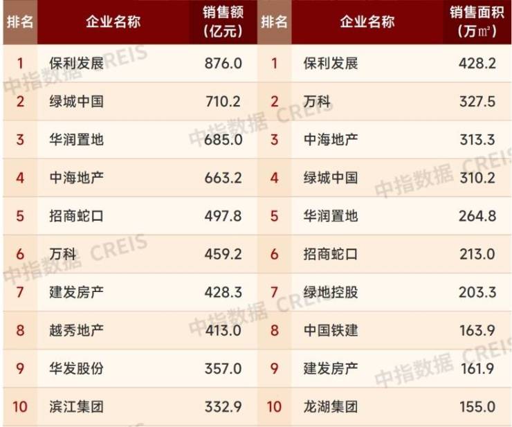 此外,进入销售额TOP10的房企还包括建发房产、越秀地产、华发股份、滨江集团,销售额分别为428.3亿元、413亿元、357亿元和332.9亿元。