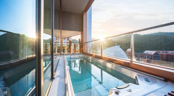 豪宅生活的本质,是精神世界与物质享受的高度平衡。作为贵阳惟一室内外双风情泳池配置的豪宅社区,黑钻外享约300㎡无边际恒温泳池,内部则户户配置法国艾菲尔恒温成品智能泳池。一户一泳池与超级景观甲板的设计是一线城市豪宅产品顶级配套,远观贵阳繁华天际线,近看阿哈湖公园山脉起伏,坐拥饮马湖繁华美景,当属难得。