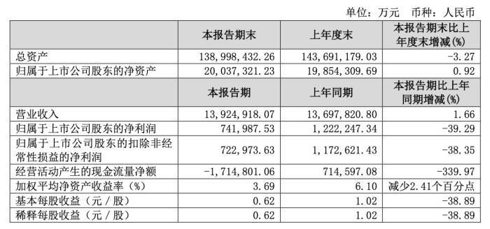 8月19日晚间,老牌央企保利发展发布了2024半年度业绩报告。报告期内,公司营业总收入为1392.49亿元,同比增长1.62%;净利润106.98亿元,同比减少29.00%;归母净利润74.2亿元,同比减少了39.29%,增收不增利。