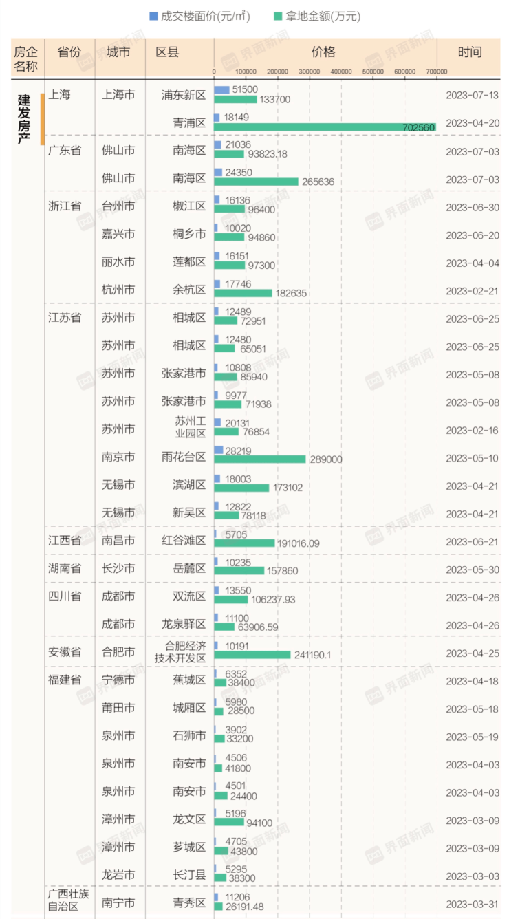值得注意的是,今年以来,建发股份在房地产主业上“激进”拿地,销售也挤进了行业前十,成为这两年地产行业最大的黑马。今年在核心城市上海拿下2宗地,南京、成都和杭州等地也有布局、另外广东也有2宗地,猛攻华东、华南区域。