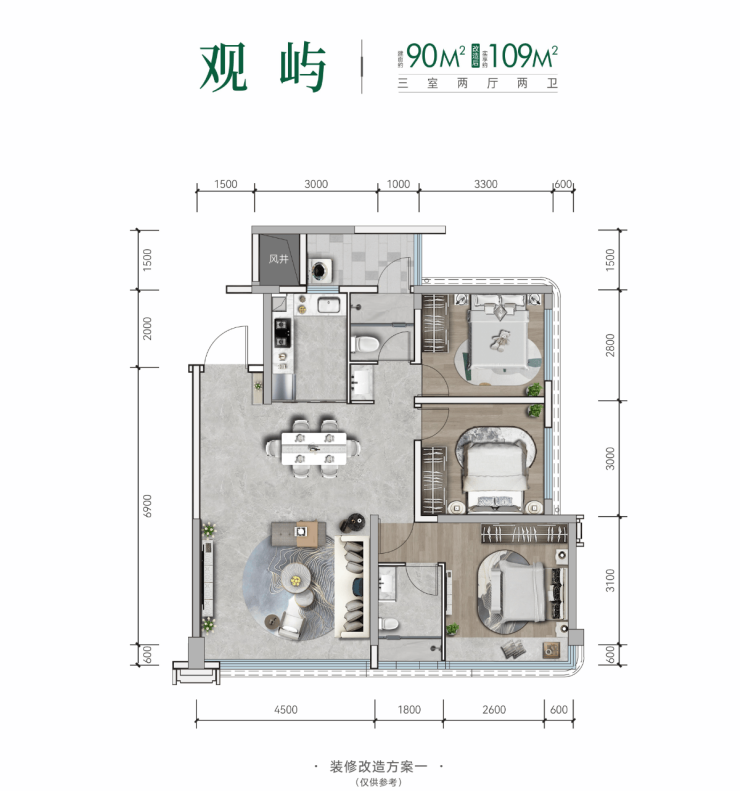 约90㎡户型,实得约109㎡,采用LDK一体化布局,南向景观宽厅,轻松打造三房,让日常起居告别将就。再加上合理的生活动线、充足的采光以及完善的收纳设计,堪称全能好房;