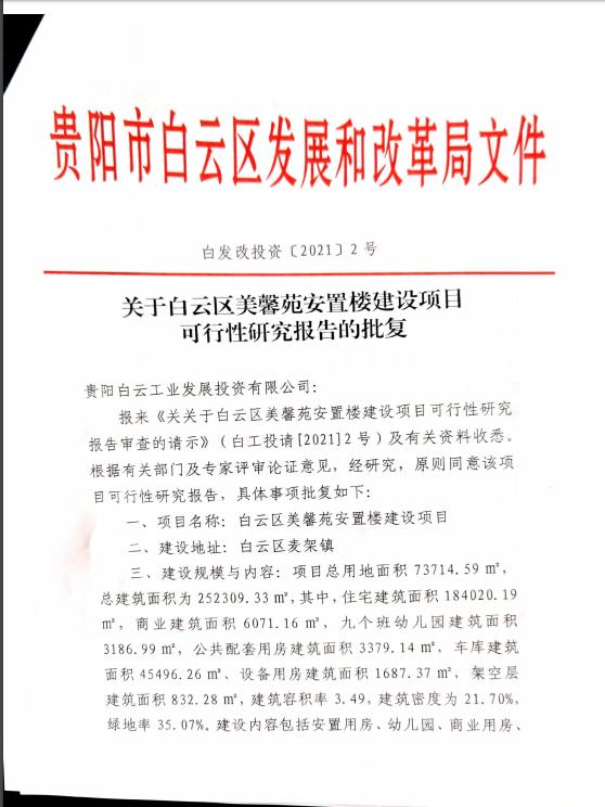 据查阅,今年1月24日,白云区发改局批复了该项目的可行性报告文件。文件显示,项目业主单位为贵阳白云工业发展投资有限公示,建设工期为两年。