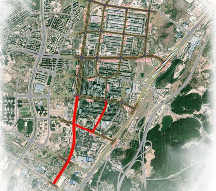 其中铝兴路全长1040米,红线宽度40米,道路等级为城市主干路,设计速度为40公里/小时,双向六车道,沥青路面。
