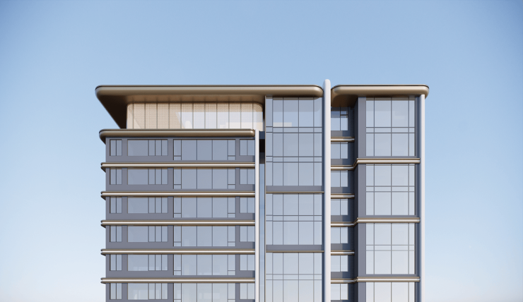 首先,在建筑立面上,作为产品力的重要外在体现,好房子更是需要颜值出众,不仅要有独特的感官体验,更要具备“封面感”。而洋浦·頭号山立足国际审美,塑造出极具现代艺术质感的形象,打破了老城建筑的刻板印象,树立了区域美学的新标杆。贝金米黄石材、泥客石奠定奢级基调,香槟色与古铜色铝板铺陈出高级质感,全景玻璃幕墙呼应时代美学,米白与灰蓝色涂料增添典雅气质,超高窗墙比设计实现内外视野的无界交融。这不仅是审美层面的反复推敲,更体现着对选材与工艺的品质追求。