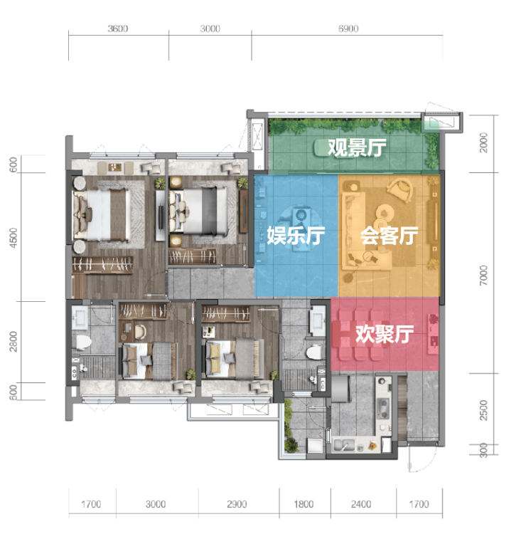 在户型设计上,延续御湖组团的经验:面积做大并不是它的首要意义,更重要的是,在同样的面积段下怎样将内核做得更强大。