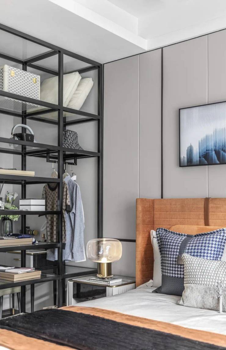 主卧做套房设计,形成一个相对独立的衣帽间。若是追求更极致的奢阔主卧套房,可将次卧套入,装点为书房、收藏室、工作区······一切皆由主人发挥。