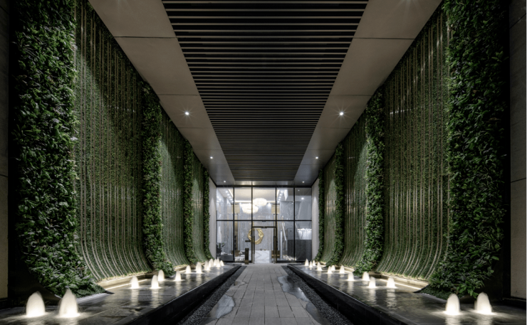组团入口仪式感极强,园林小而精,用了大量的水景设计,呈现更丰富的细节;