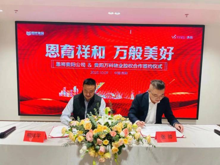 就在今天(10月9日),恩祥贵阳公司与贵阳万科物业股权合作成功签约,两者强强联合,全程服务云岩恩祥知识城邦项目(含恩祥丨仁大甲第)。